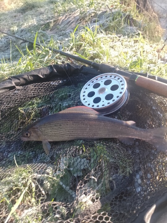 Andy Burgon from Bodenham was a bit more outspoken about fishing Lyepole on 4th January: “Midwinter madness! Minus 4 degrees when I turned up at 9 AM. Ice in the rod rings for the first hour…overall a bitterly cold day, but rewarding…” He caught 16 grayling from the Lugg by trotting with a centre pin. Incidentally, I think Mr Burgon must be a bit of a purist if I can use the word without seeming to be rude - note from the photograph the lack of handles on the spool of his reel, which is equipped with finger sized holes instead. This implies careful reel management and use of the check when playing a fish plus batting the rim of the spool in order to wind the tackle back for each new trot. I could never bring myself to remove the handles from my centre pin reels; I get overrun tangles easily enough…