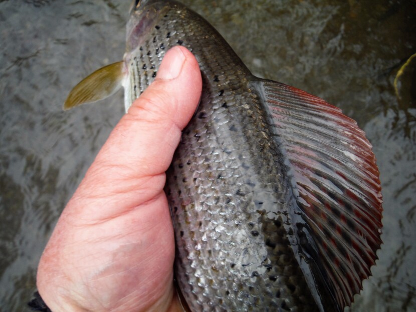 On 29th December a visitor from Cambridge took 3 grayling from the Llynfi at Pontithel using nymphs while David Wright fished the Lugg in high water at Lypole. The Lugg and Arrow are usually the last tributaries to come down in level due their powerful and deep springs charged by rain falling on Radnor Forest. David caught 4 grayling to 1.25 pounds by trotting. Steve Bown from Solihull with a friend fished Lyepole the following day and caught 10 small grayling along with a lot of out of season trout, finding the water: “…6 inches high, but lovely and green.”