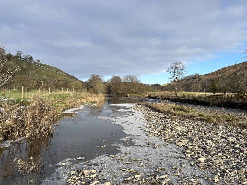 Lyepole meadows - Andy Burgon Floods made the Wye system unfishable through most of December. Only as the Christmas holidays arrived did grayling and coarse anglers get a real chance at the water, even though air temperatures fell down to minus 4 or 5 degrees. This was the kind of cold and dry high pressure weather I always ask for during the winter period, even though iced rod rings are a trial. Be careful about what you wish for; this time most catches turned out to be quite modest. As early as 21st December, Rhodri Lewis from Neath with a friend visited the top of the Irfon at Melyn Cildu (the Irfon tends to come down first as floods recede) and found themselves beset with tiny grayling parr. This, from a water which was a few seasons ago gaining a reputation for “a few big ones,” was at least hope for the future. After Christmas Neil Guerin from Camberley caught 3 grayling from Craig Llyn on the main river while Justin Layne from Cambridge took 4 at Abernant. He appreciated the steep and narrow path contrived to the upper part of the beat.