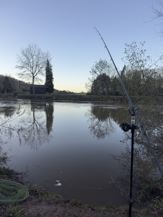 Aberbwtran Irfon - W from Ludlow Next day Jim Clarke with a friend from Alcester were at Middle Hill Court: “The river shot from 1.2 to 3.61 metres overnight. The water was out the banks near the car park area, just in over the rest of the stretch. We managed 3 barbel on the bank, biggest being 8.15 pounds. We lost more tackle than caught fish, due to snags moving in the swim during the day.” On 10th November David Morris led a party of three fishing at Middle Hill Court. Due to high water they settled for fishing at the bottom of the beat under the battlements of Goodrich Castle – which makes quite a backdrop. They caught 8 barbel, 15 chub and a pike. Lee Clarke from Bulkington with a friend caught a barbel of 9 pounds 7 ounces plus 7 chub at How Caple Court. In high water conditions they strongly recommended a dog spike and rope for getting up and down slippery banks. Meanwhile the grayling fishing upstream was relatively slow with small numbers of fish taken.
