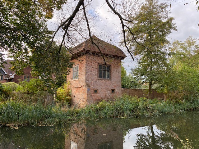 John Donne's house - Malcolm Burch Every mile or so is one of the hump-backed footbridges made of brick for which the Navigation, supposedly the first proper canal ever built in England, is famous. Curiously enough, downstream in the grounds of Pyrford Place and flanked by rhododendrons is what looks like a summer-house overlooking the water. The area is known as Pigeon House, but that refers to another building which once stood by the main river. This little “summer house” with one room above another, ornate tiled roof and diamond paned windows is something quite different. In fact it predates the Navigation by more than a century and is part of an Elizabethan house where a young John Donne during his years of poverty is said to have written some of his poems. “No man is an island entire of itself…” I wonder now, could he have been scratching that one with his quill after sitting up there looking out across the lonely marshes and meadows through which the Wey was winding? Today there is a golf course and beyond the Royal Horticultural Society gardens at Wisley. In my own time, probably a great disappointment to my English teacher, I think I cared more about perch and other kinds of fishing than 16th century poetry. My sphere of operations for this important business was half a mile upstream and in the open fields below Walsham flood gates there was a perfect stretch to fish, starting just below the first footbridge.