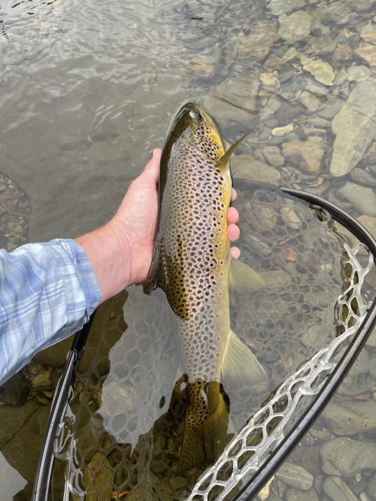 Fished for a few hours. had a 15" fish on a nymph and missed another take. Only saw a few rises when I was there so nothing on dry fly. River was low and clear despite heavy rain the day before.