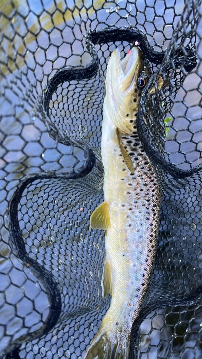 Clear water. Good level. and 14-15 degrees. Only browns today, fish were active from 07:00 to 11:00 on double nymphing.