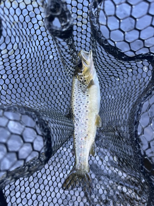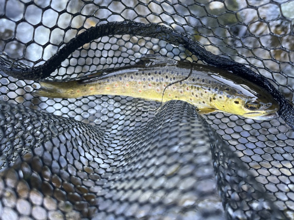 Heavy rain all morning and a half dunk whilst wading meant I was wet cold and in need of a shower and dry clothes by lunchtime :( Had 1 trout c10" on a nymph and lost a couple of smaller ones before I called it a day.