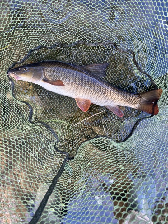 Lovely half day fishing this very picturesque beat. There were fast flowing swims, as well as deeper slower swims. I found the fish in the fast water, and luncheon meat bounced down the swim was the method. Not a touch on any other method - they wanted a moving feast. Caught two beautiful Barbel, one just over 7lb, and the second was 8lb +. Also lost two other barbel. To round the session off caught a PB chub, 5lb 2oz. Will return…????