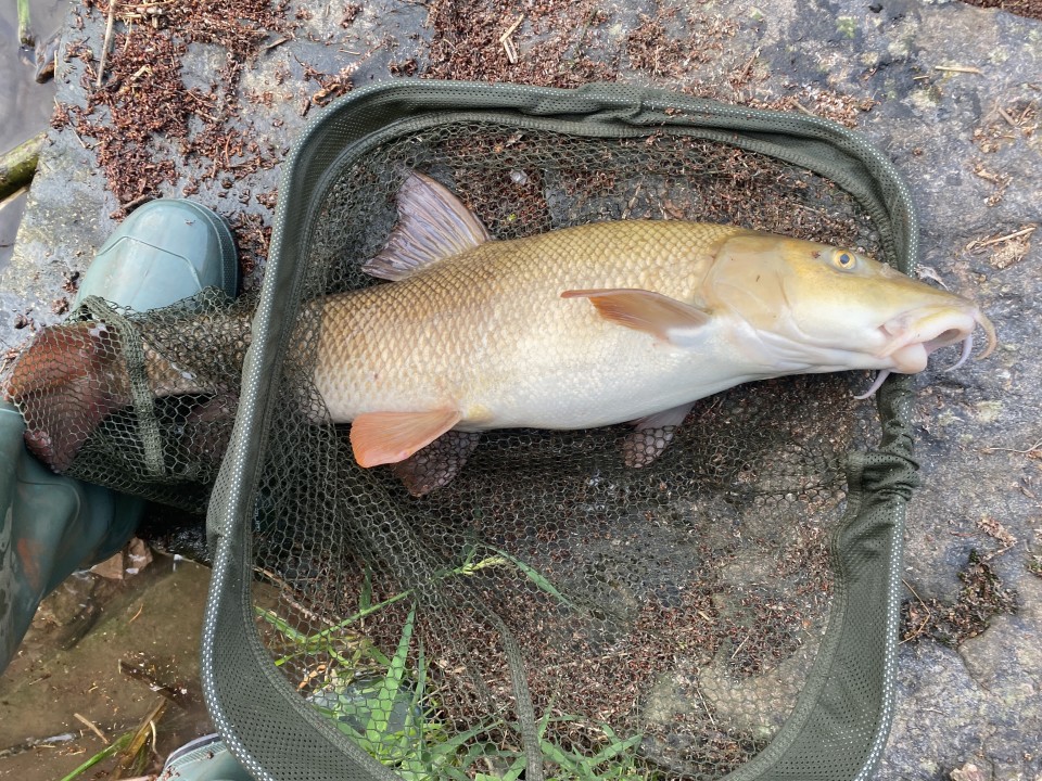 2 anglers fished the stretch today. My colleague fished the near the hut and caught 17 of the chub and I made the long, at times comical trip up the hill and over to the Lucky Stone. The fish came throughout the day but whatever we tried we just couldn't find the barbel.