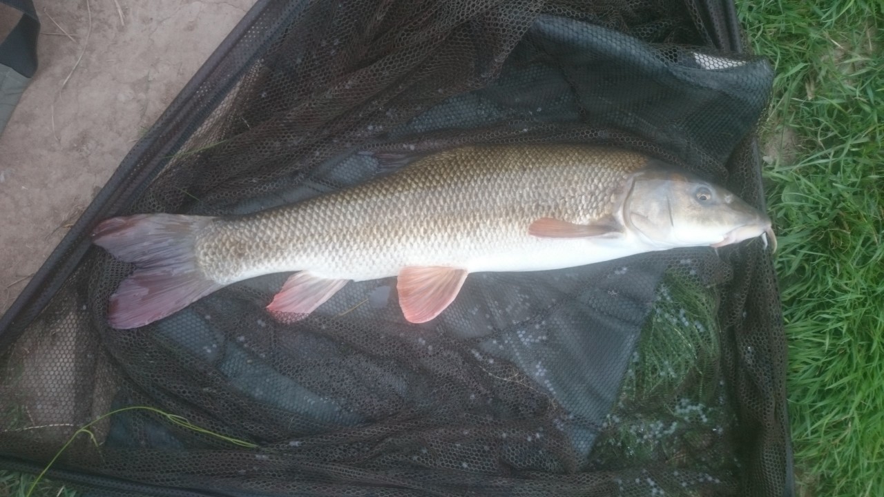 Barbel 8 lb 6 oz first cast. Caught all in the morning it was overcast. Once the sun got out the bites dried up