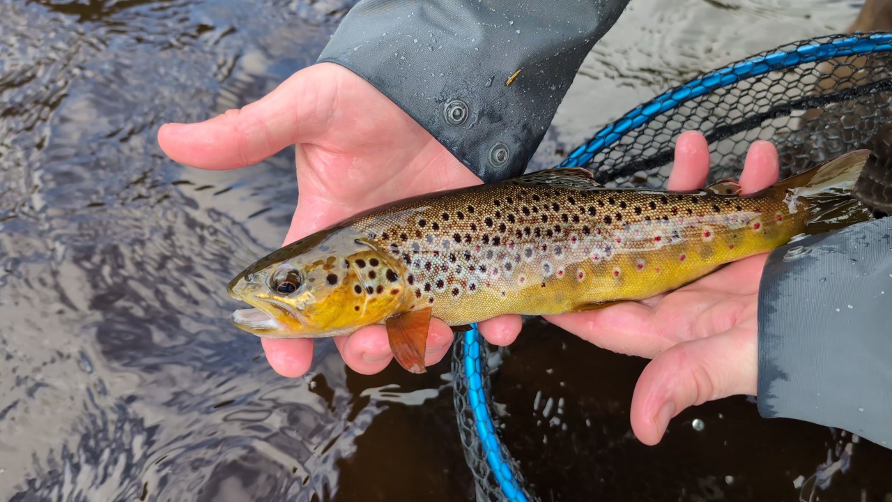 A very windy and wet day, which made fishing very challenging. Around 10 fish between us in just a couple of hours, pulling wets. Most fish were 8 to 12 inches, stunning colours.