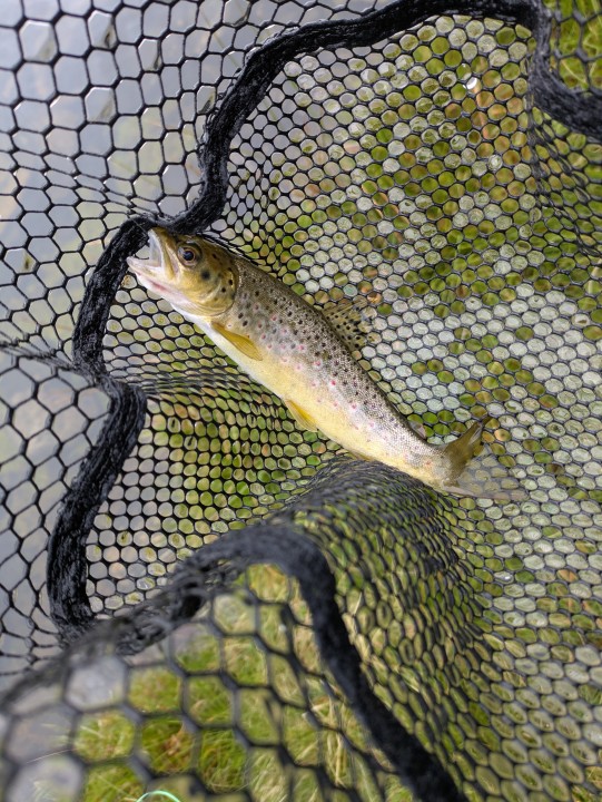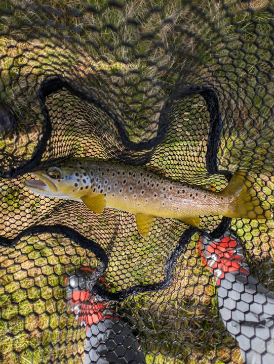 2 x 3/4 lb browns caught and released (one about 6' from bank!), one on a dry, another on a traditional wet. Extensive surface hatch, many rises. Some weed in the lake. Everything looked very healthy up there, outstanding fishing.