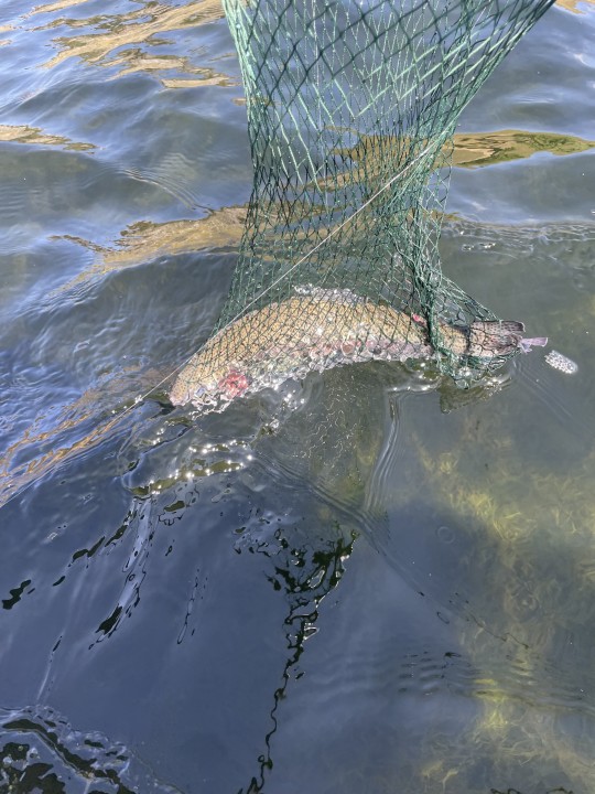 3 Rainbows taken on Iron Blue, Daddy longlegs and a cruncher all from the far side of the lake. All quickly returned. Its difficult to clamber around the lake, some very boggy/marshy areas - typical upland lake!