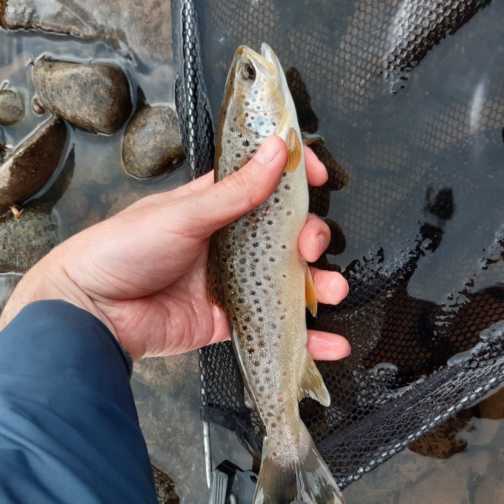 Three brown trout under 9 inches between the two of us. Two on wet fly one on dry. Good number of mayfly around but not many fish rising.