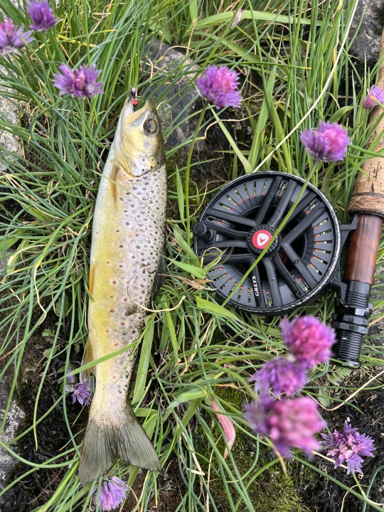 18’ on the river since we last fished, and a bit of colour after recent rain. J G Emerger took all the rising fish. Beaded PTN variant, Copper John and pink tagged hares ear worked on Euro-nymphing set up. Good mix of trout and grayling 7-13’ from each method.