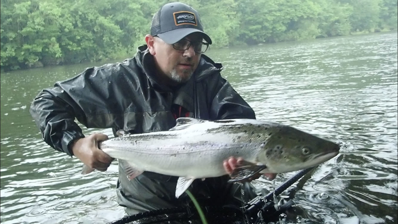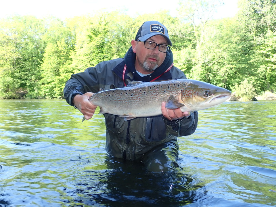 14lbs Fresh Salmon (No Lice) taken on a fly from the Rock Pool (32”L 18”G) 13:30hrs river is dropping but still a good height.