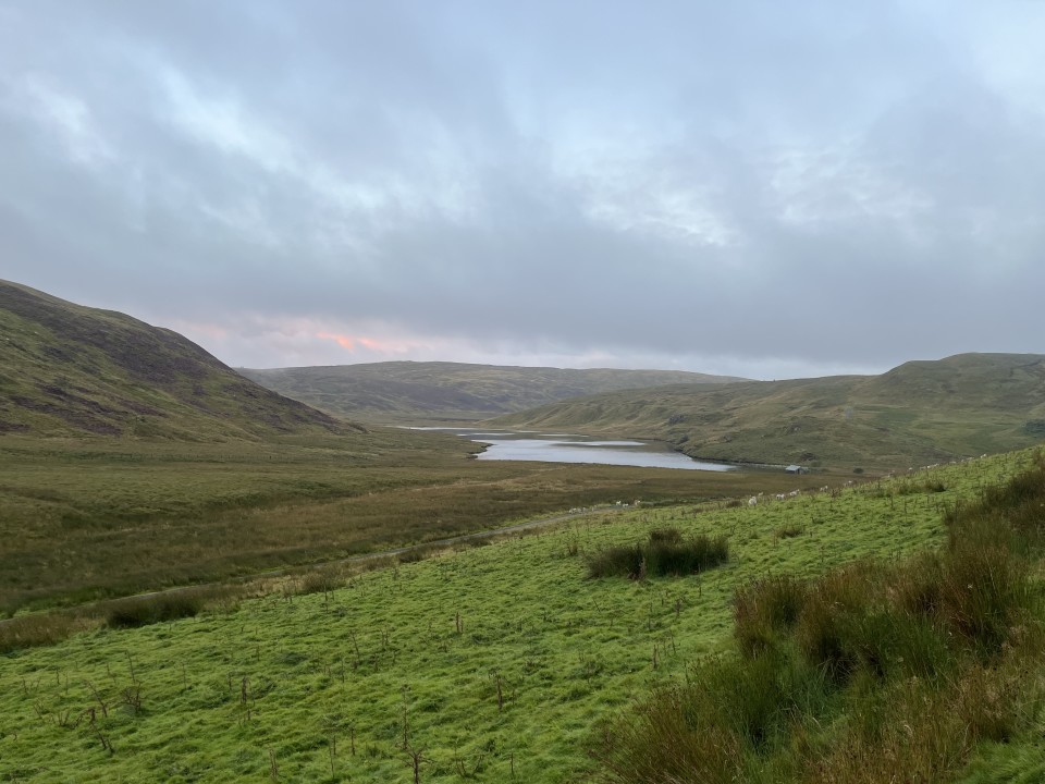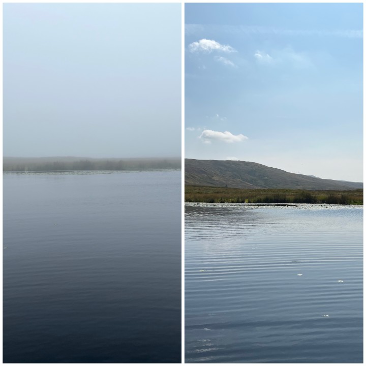 The weather forecast the day before indicated a cloudy start then sunshine for the rest of the day from mid morning. So the decision for an early start was made. Arrived around 8am to low cloud and damp conditions. Fishing was slightly delayed due to a puncture and the need to change the wheel (tuned out to be an expensive fishing trip as the tyre was not repairable). Fish were rising to flies fished on the surface but not easy to hook. A hand full of fish landed before lunch then back out in the afternoon with the cloud base higher but still no signs of the sun. Black terrestrial flies of various sizes where now being blown onto the water with the trout going mad for them. At times there was so many fish rising in front of us we didn't know which one to cast to first. Fishing black flies fished on or just under the surface we easily landed more than 20 fish each, with a couple being around the 1/2 pound size. As we packed away at 6:30pm the sun made its first appearance. Beautiful natural lake to fish and once again saw a hen harrier.