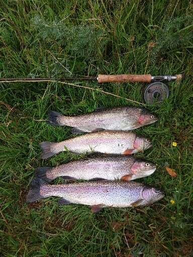 Fly fished all day very windy no fish showing. Stuck it out and eventually caught four trout and a few perch on floating line and weighted fly early evening. Nice reservoir to fish but access roads around reservoir need serious repairs.