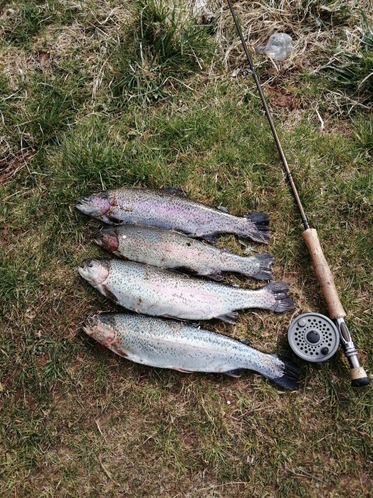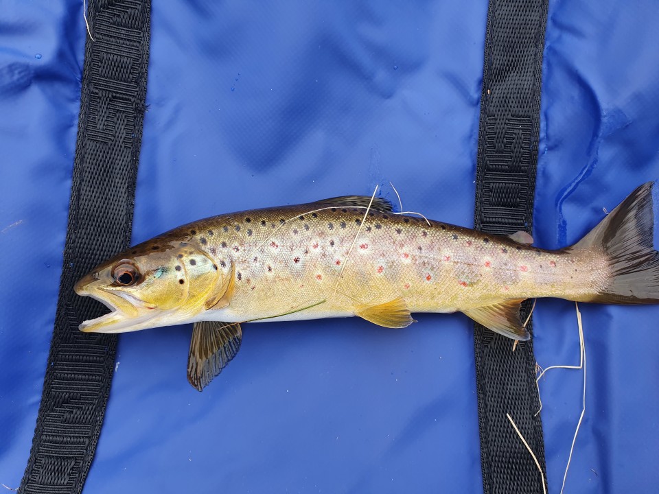 Bitterly cold day tried spinning and worm both bottom and float and finally caught a long lean fish on the fly