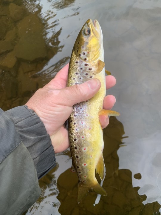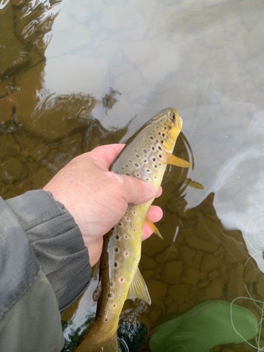 Fished for the morning. Not easy but managed to pick up a couple of fish each on teams of wets. Beautifully conditioned fish between 3/4-1 pound.