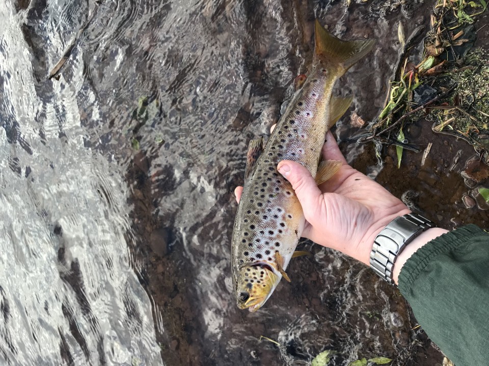 Brown trout 1lbs. Returned. Blue flash damsel fly