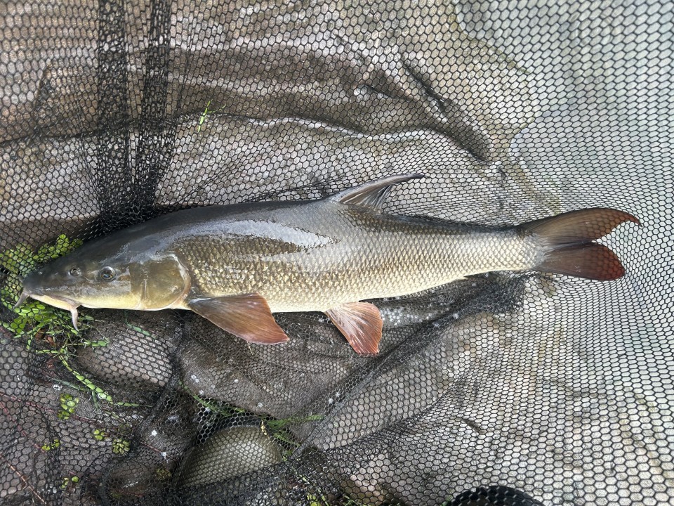 Fished for a few hrs this evening after gales subsided. 3 chub between 3&4lb and 4-4 barbel. Pellet and meat. Other was an eel. River rising nicely.
