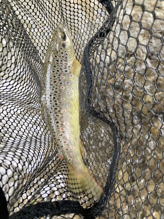Tough going. Managed two small WBT both on deeply fished red tag PTN. No rising fish evident in 6hr session. Cold wind but otherwise decent conditions. Pretty overgrown and limited access in places.
