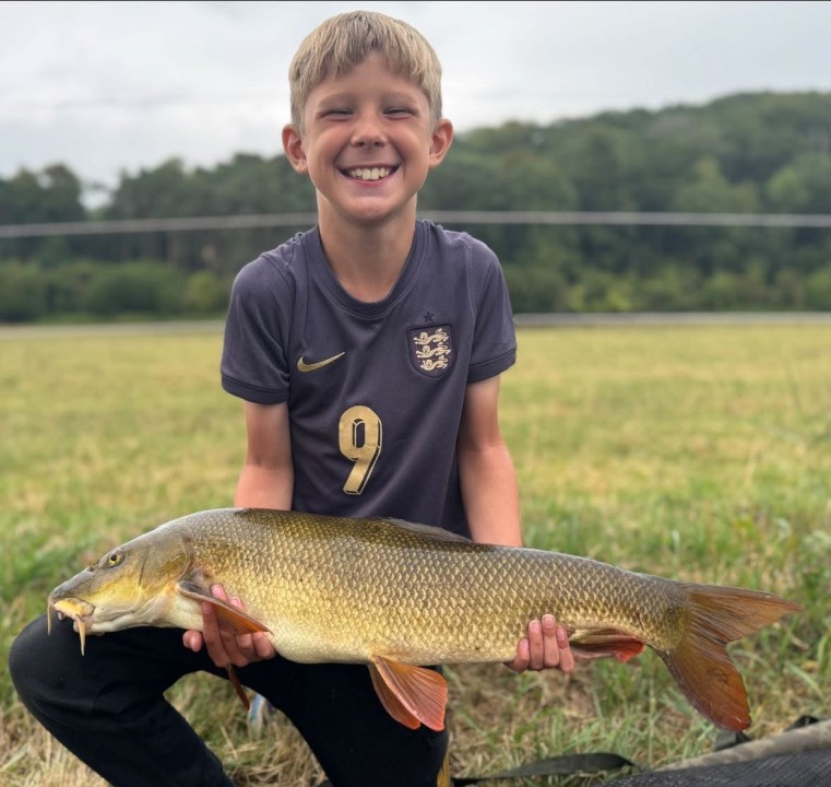 Great day at How Caple Court. The day was booked to hopefully help a keen 9-year-old catch his first barbel. He did not leave disappointed. With support from his dad (who chose to not really fish much in order to keep an eye on the lad) and some advice from me, young Freddie caught five barbel up to 8 lbs 3 ozs and his first chub at 2 lbs 12 ozs. To see him come running along the bank leaping for joy after the first one made the whole trip worthwhile (not to mention a large amount of relief on my part!). Once I had passed on a few tips and put him in the right swim (at the second attempt), I managed a bit of fishing too. I managed to catch five barbel up to 9lbs 12 ozs. I could have stayed on for another hour or so after the largest but decided that was a satisfying end to the day and left. All the fish were taken in the fast water swims in the lower part of the stretch. The two deepest seemed best during the day but later on barbel were showing in the shallower fast water, which is where I caught the 9.