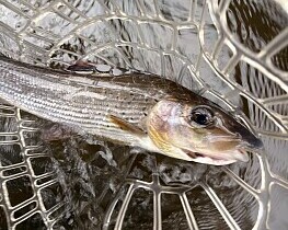 Hard going and a beat that most definetly requires studded soles (which I didn’t have) managed 2 Grayling, one small and one of around 12-13 inch, also an out of season trout which was released very quickly with almost no handling. All caught on a pink hothead nymph.