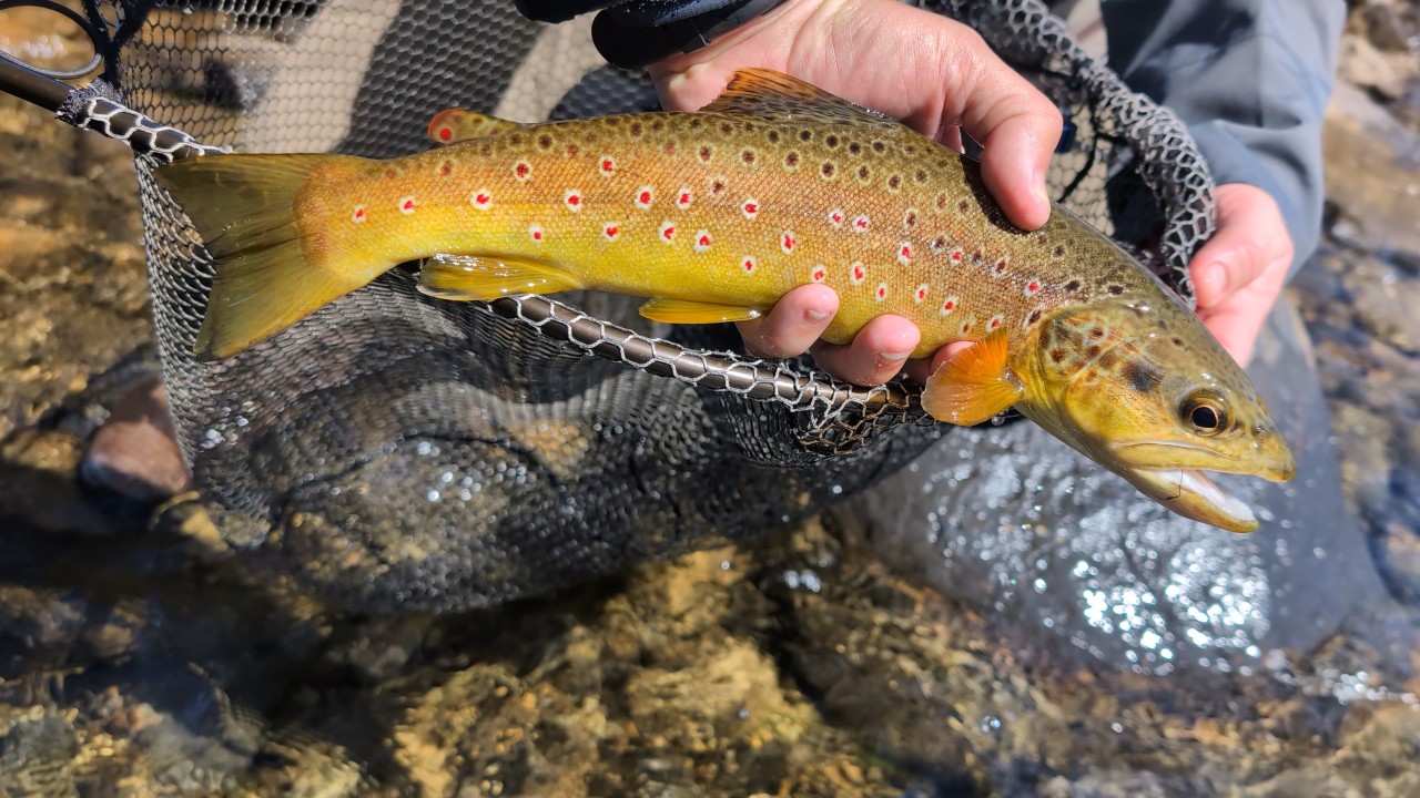 Just the one fish, a nice wild brown of 1lb+. Spectacular location. The water level was extremely low, with high winds also making it a chore to fish, but the scenery made up for it.