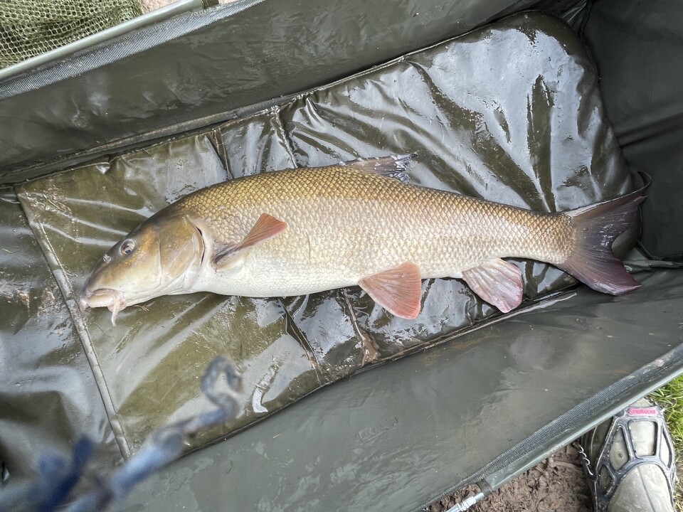 I fished several swims in the woods and caught 2 barbel (5lb and 7lb) and a 3lb chub all on various pellet baits in the afternoon.