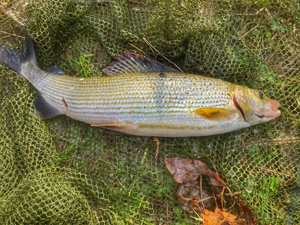A bit of overnight rain tempted me for a last Grayling session . The river was up just a little but had a slight tinge which gave hope . 4 hours later 31 Grayling had graced the net trotting red and bronze maggots