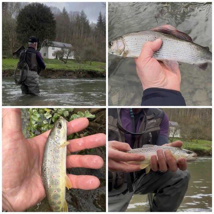 3 wbt and 2 grayling caught euro nymphing with size 18 and 14 Duracell. Fish are still lethargic, water still very cold. This beat never disappoints. KM Hereford.