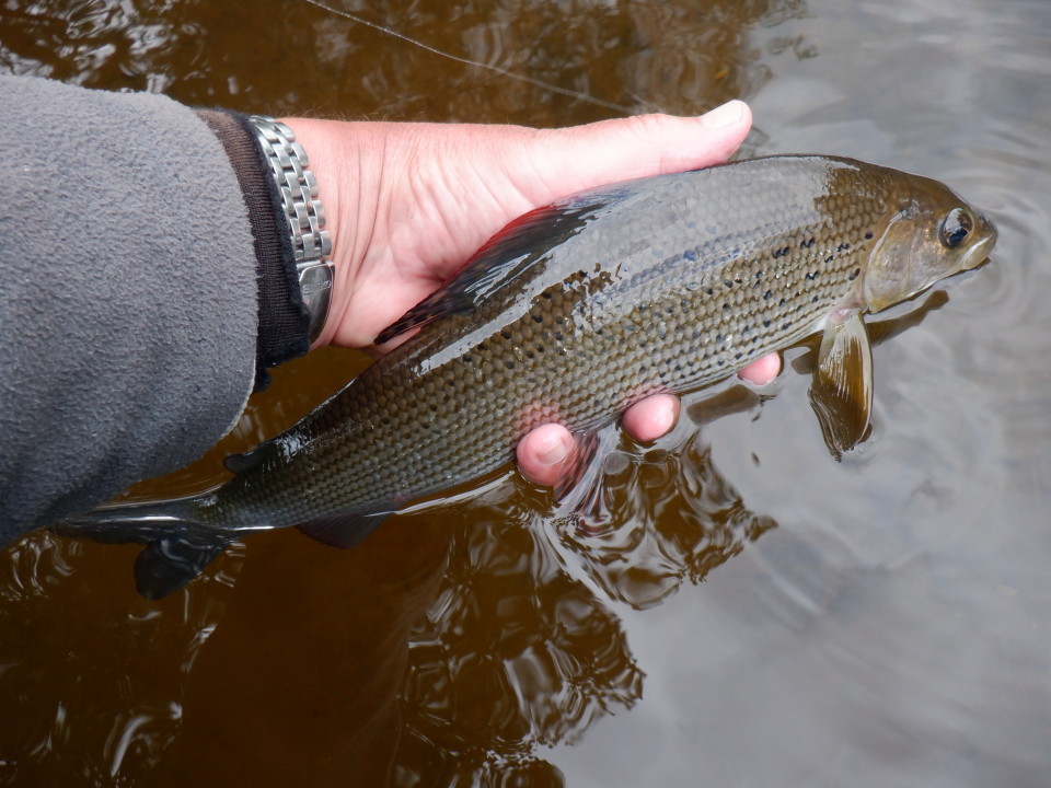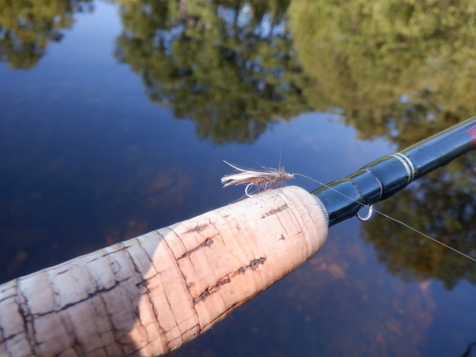 A very pleasing start to September on a lovely day with thin cloud, no wind, water 11 degrees and some fly to get fish rising: some sedges in the afternoon and pale wateries from 11 a.m., though no rising fish until 1 p.m. From then on, fish rose here and there until almost 5 .p.m. Bugged during the morning and last thing, and had fish on a few tunghead jigs: a Duracell variant, olive quill and flashback PTN. Most fish in the afternoon came to Goran’s Sedge or to a small PW Duck’s Dun, with one or two on a grizzle EH caddis. Trout from 9-15 inches and grayling from 10-15 inches as well. Biggest trout and grayling,1.5lb. No more rain for a while please!