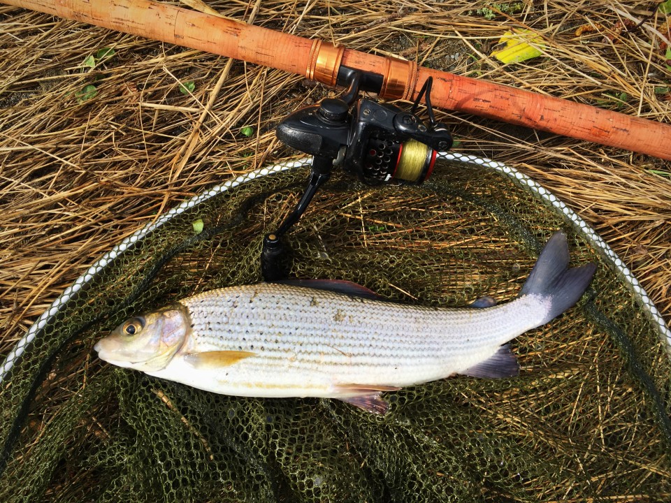 Final day and despite the river being cloudy and up at 1.8m had to give it a go before putting the trotting rods away . The jolly green giant did the job just a couple of feet out from the bank in the slacks . 4 of the grayling were over a 1lb , whist the Trout have certainly plumped up ready for the fly lads and lasses