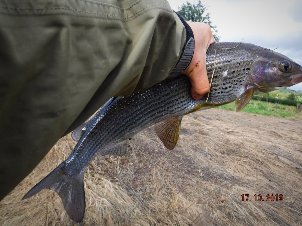Buith gauge dropped to 1.45 so thought it was worth a go with the trotting rod . Feeding an occasional handful of maggots soon got the fish feeding and had a cracking couple of hours . The Grayling were mostly around the 1/2 lb mark but had one cracker just over 2lbs . In between plenty of OS browns a few dace and what I think is a Roach ! Well worth an absolute drenching