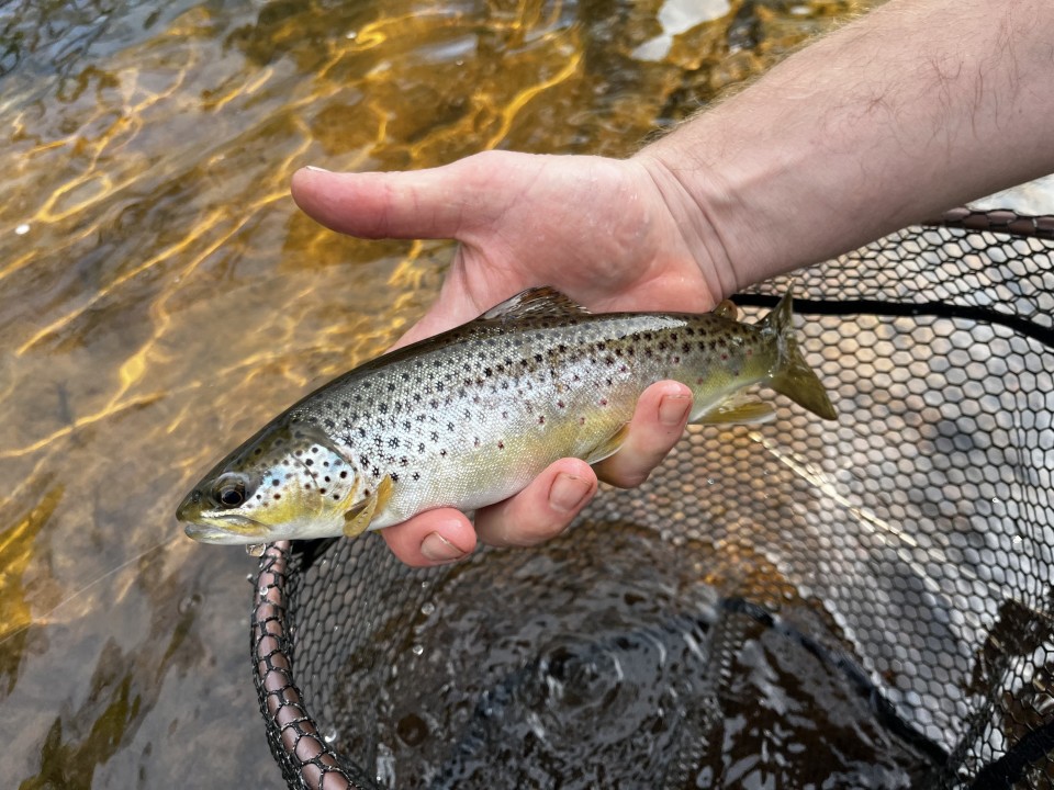 caught and released 1 small brown trout then quite for rest of morning left midday as too hot and water level low