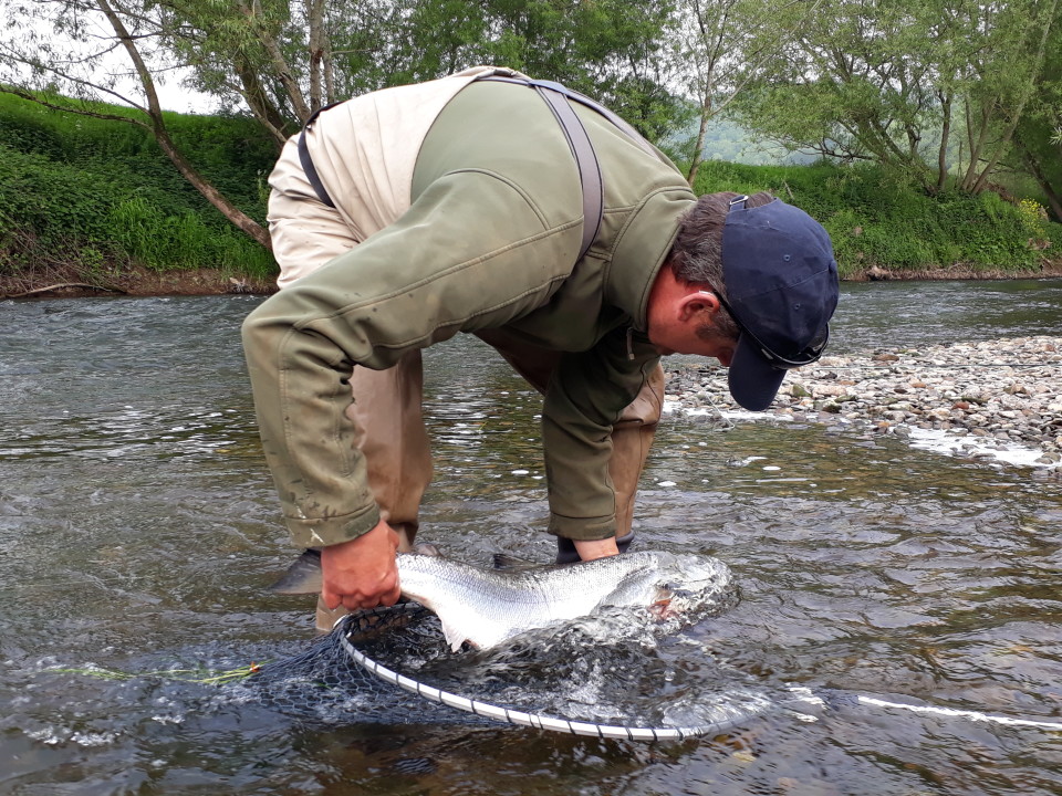 Redbrook : 2 Salmon on the Fly in Rapids pool for Simon MacLuacas 12lb & 13lb