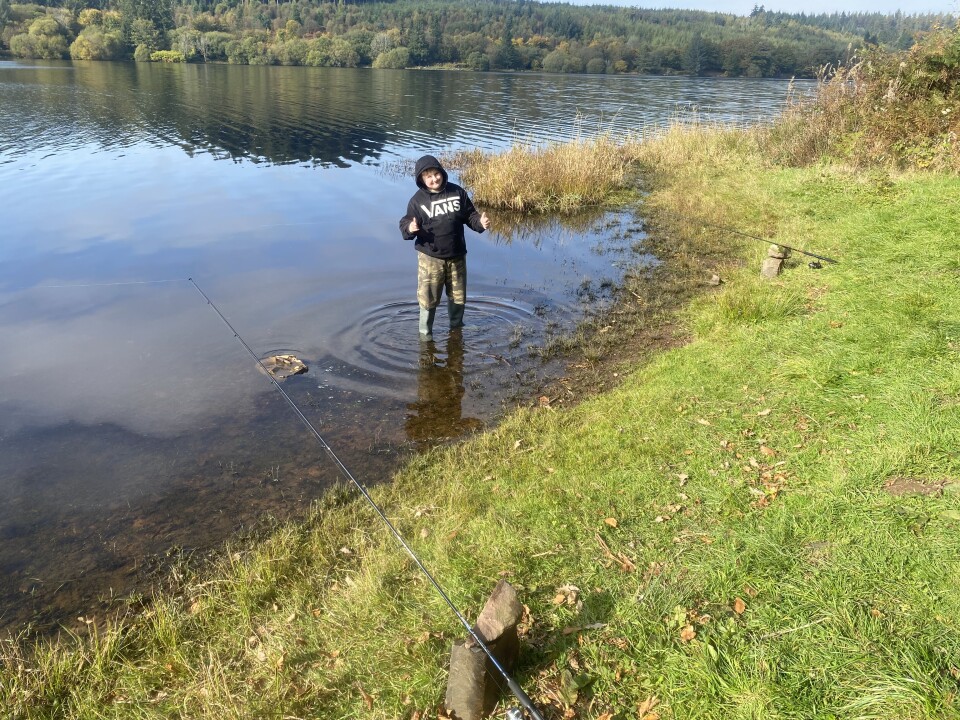 Lovely day fishing but not easy. We found the lower section more productive in the afternoon but lost four between us and brought in three.