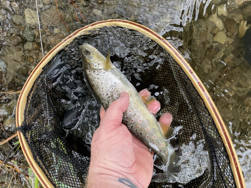 Checked the river was running clear before booking due to thunder storms in the area. Did the first 25 yards and caught a fin perfect fish from a little riffle. Was just starting to really enjoy myself and the river turned brown. Shame it couldn't have held off for an hour!