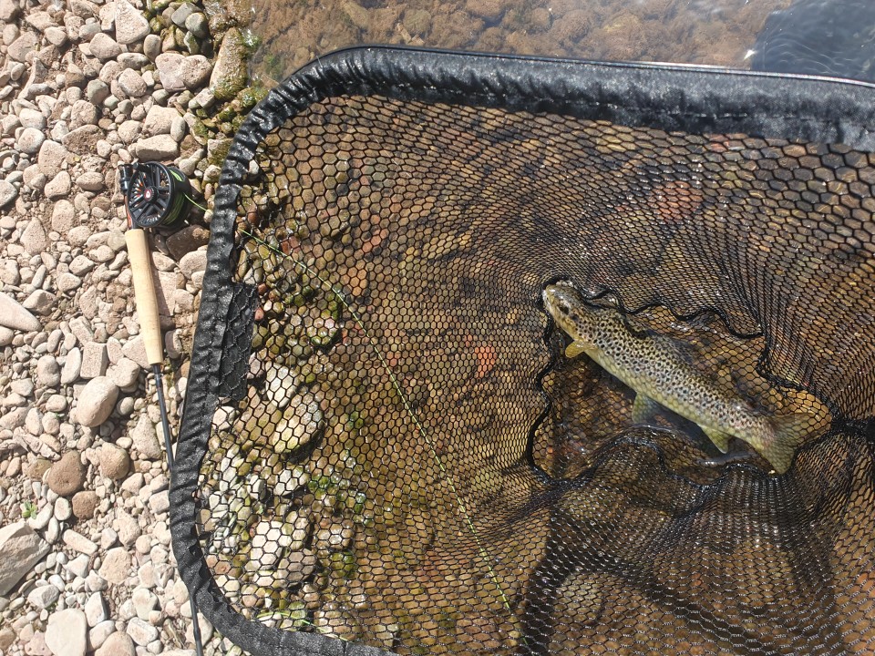 A lovely stretch with lots of insect life but few fish rising bot I was only there for a couple of hours middle of the day. X1 trout about half a pound on a Dun Duck.
