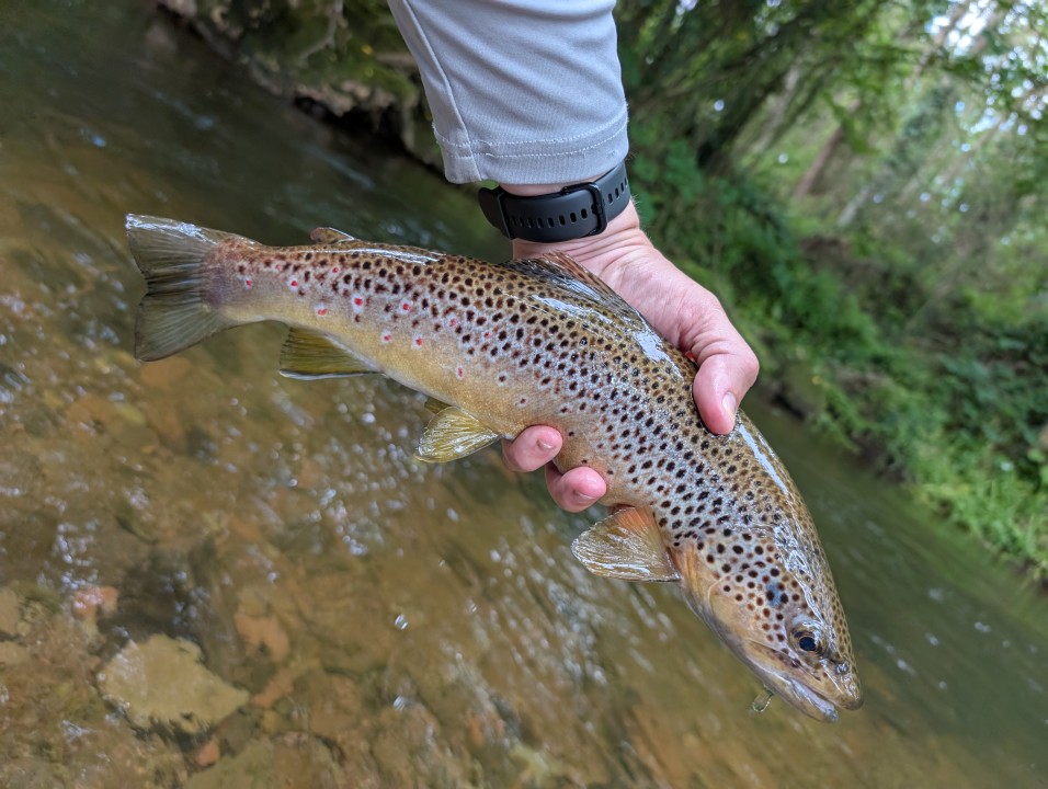First time fishing this river so I wasn't sure what to expect. I used an 8 footer but a 6/7 footer would've been better as it's mostly fishing in tight spots. The river was running low & clear and it looked like it needed a bit more water to bring some of the pools to life and add a bit of depth to the runs. Hardly any risers though it was morning and cooler than recent weeks. Not much in the way of fly life. The bits I could fish I had four and lost one. 3 were on a nymph including 2 x cracking 14" fish.