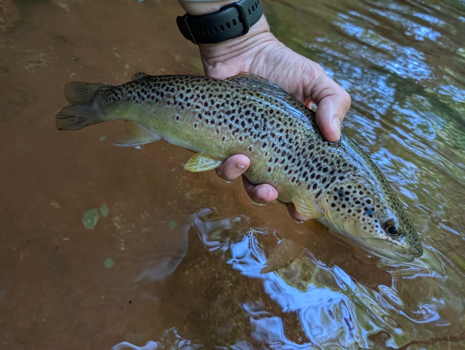 Water was looking fabulous , sparklingly clean looking bed and lots of varied bugs on the stones . The proverbial gin clear though , think the fish saw me coming for sure but managed the one so happy with that . I'm sure there's many more!