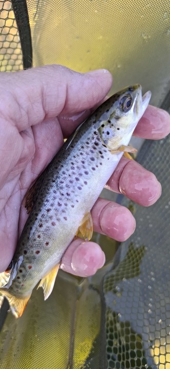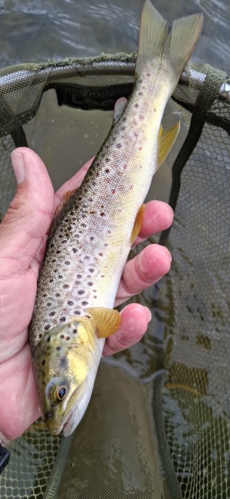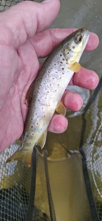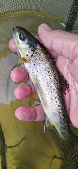 Six brownies, of the usual stamp for here to the net, and a couple of salmon parr !!! They're feisty little things and, more than happy to nail a well presented fly ..