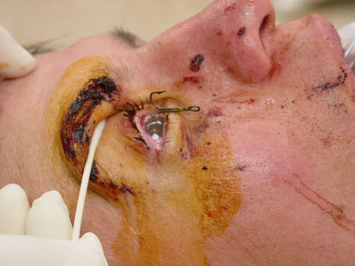 Lastly I would implore you to use eye protection for all your fishing and especially clear glasses if you are night fishing. I recently came across three anglers in the small hours, none of which was wearing eye protection! This sadly is a graphic image of a fisherman who was not wearing eye protection. I do not apologise for showing this if it deters any angler from not fishing without spectacles!