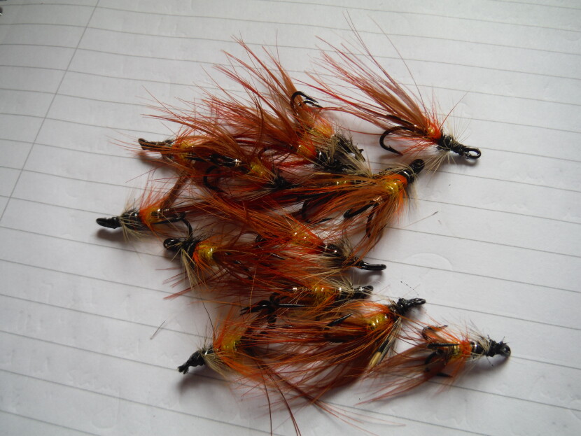 Salmon reports had gone quiet for a while as the flood dropped off. Mark Harris from Swansea fished the Rectory beat of the upper Wye on the 7th, but saw nothing. Then we heard that the Spreadeagle beat below had taken 3 salmon, one of them being a coloured cock fish of 8 pounds. Wyesham just above the tide reported a salmon of 18.5 pounds on the 8th. Then on the 10th regular salmon angler Steve Boswell reported two cock fish of 36 inches from the Ross Angling Association waters (immediately above Goodrich Court). In this year of scarcity, that is quite a brace! They were both taken on the Bann Special, which has long been a favourite pattern of mine. It has a local following (although some would opt for the Usk Grub) so bravo for the Bann! It’s a shrimp style fly of course, mainly constructed from golden pheasant. There are two versions of it, one bright with jungle cock cheeks and a low water version without.