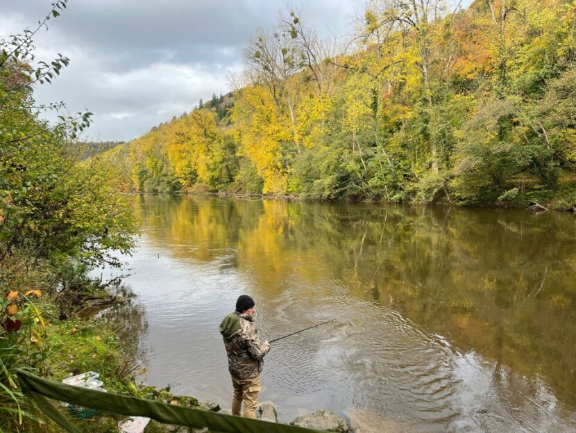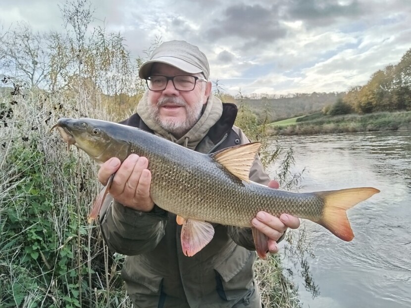 Thomas Wood - Alan Trevett from Basingstoke Between the showers the winds were up and the leaves falling fast, while air temperatures fell into single figures. While Storm Melissa was ravaging the Caribbean, days of rain in the UK kept our rivers full. Many anglers from all over the UK had days on the Wye booked, but had to content themselves with just the odd chub or barbel. Results were mixed however: Rob Leather from Chelmsford with a friend reported a remarkable catch of 40 barbel and 6 chub from the Creel. Harry Turner from Aylesbury had 7 barbel and 8 chub at Middle Ballingham and Fownhope No 8: the two best barbel were 9.7 pounds and 9.8 pounds. MJ from Weston Super Mare had a very fine barbel of 11.5 pounds from the Home Fishery. Dan Connah from Norwich was one who did appreciate the amenities of Middle Hill Court, whatever the ticket price: “Cracking day’s fishing…big thanks to Stephan…lovely kept beat, steps and ropes such a nice touch in wet weather. Tried a lot of swims until dropped in on the last one for four barbel and one chub in the last couple of hours.” Up on the Usk Reservoir, which opens late, KP from Hereford recorded 2 rainbow and 6 brown trout. We came to the end of the month with the rivers full and more rain predicted. Game fishers still have the winter grayling fishing to look forward to.