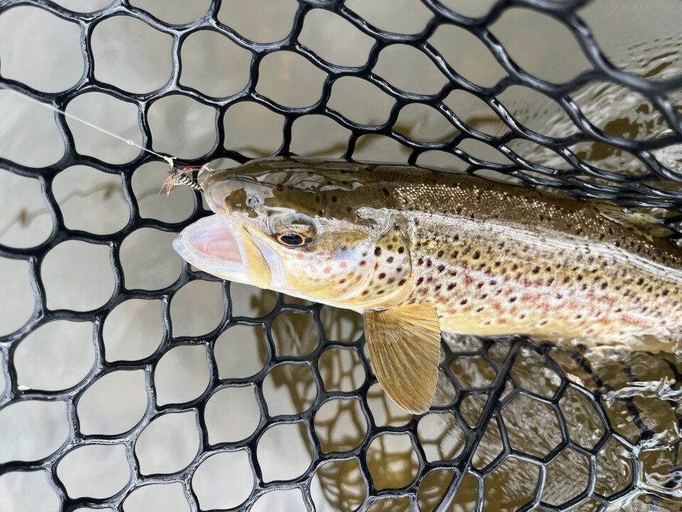 Murky water. 30 min hatching at noin. Few fish on wet March Brown.