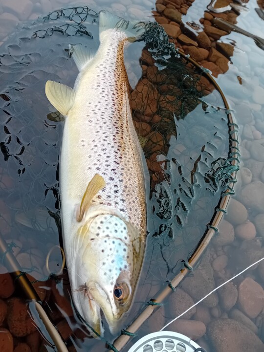 Fished the bottom of the beat, parking in the bottom car park and walking through the fields. Had a nice chat with the farmer. Lots of water. Saw only about a quarter of it. Difficult to get to the Cilleni at the very bottom of the beat due to brambles covering the path along the trees.