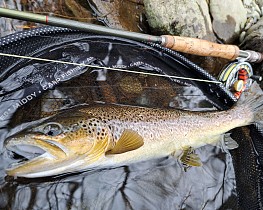 The river was very high and very difficult to wade at some areas, I did manage to land (and release) 1 small brown trout on a jig style nymph in the fast rapids.