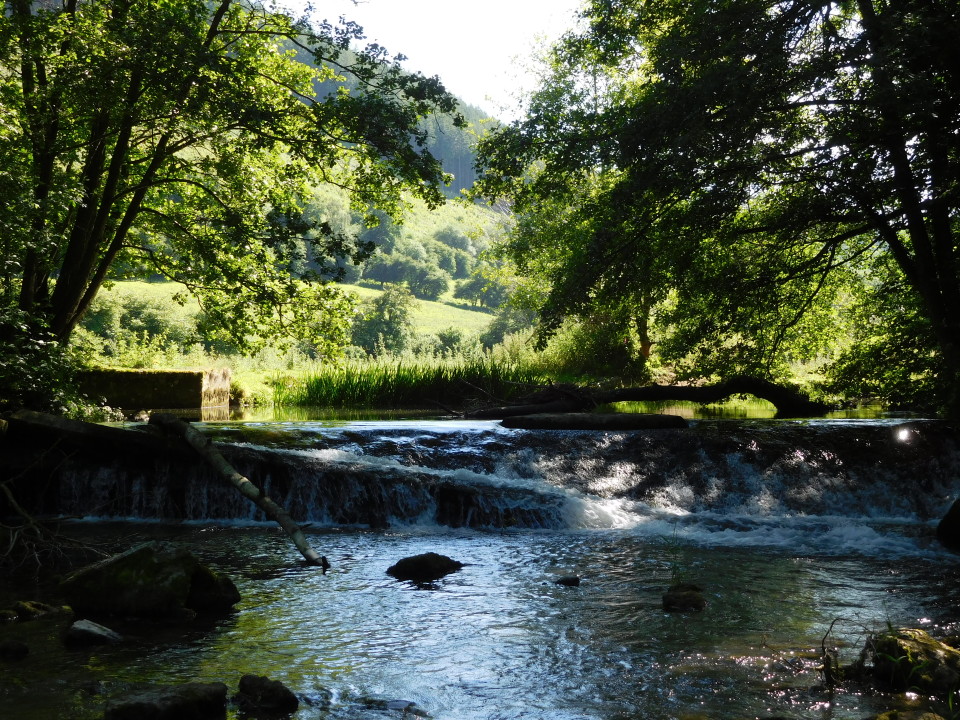A strange sort of day. With the river still at low summer level, I thought that it might be difficult. So it proved; up river de bonne heure but, runs that you would put your house on failing to produce (or producing very little). Conscious that the beat was fished yesterday, I wondered if that was the problem (equally conscious that the problem could be the thing on the blunt end of the rod). Nay bother, in turn, two fairly non descript pieces of water just below the weir produced half a dozen Grayling a piece. More or less consecutive casts; mostly fish in the 8-10 inch bracket, but including a couple at 12-14 inches. All on a PTN. No surface activity at this stage but, mid morning, with the sun overhead, spasmodic rises. Switched to a dry; but this only resulted in a run of micro Grayling