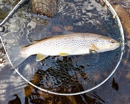 There was a bit of a downstream breeze blowing, but the water looked perfect - falling from rain the day before and still a hint of colour in it. Not much rising, despite a large hatch of what looked like very edible flies around 4pm. I found plenty of small fish on nymphs, including two at the same time on my lead fly and dropper, and one of around 1lb.
