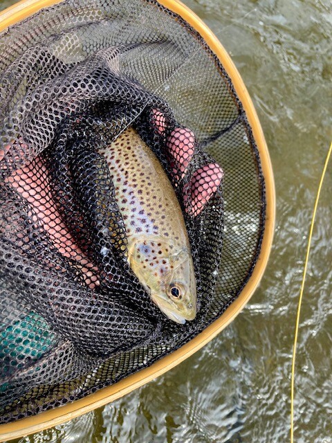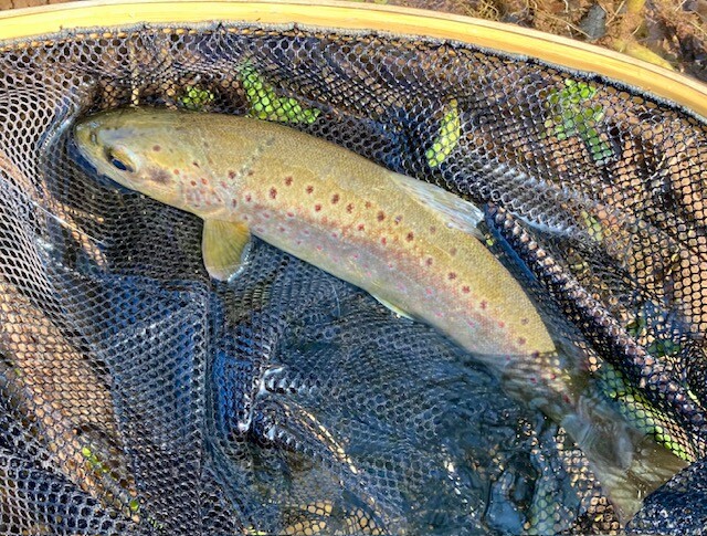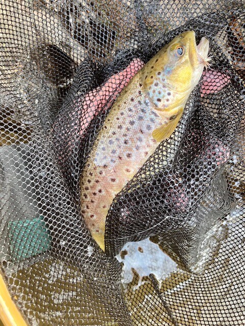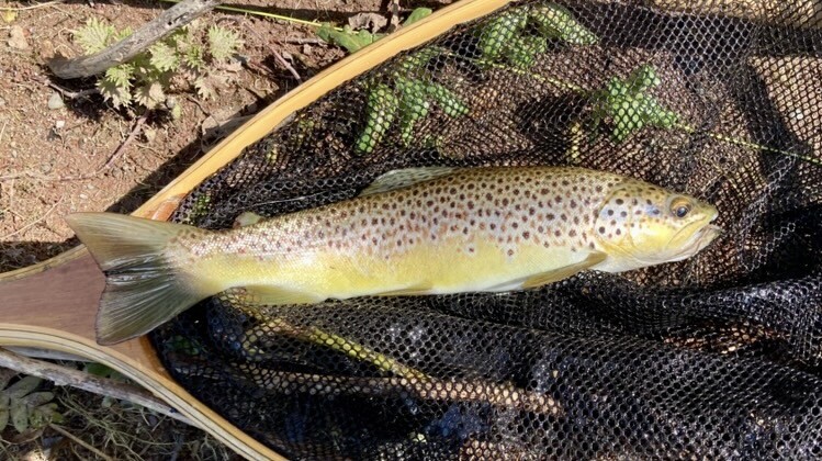It was a cool (10 degs) and mainly heavily overcast day. A sparse hatch of midges, olives plus the odd march brown came off between about 12n and 1:30pm. The trout were mildly interested and a few rose (albeit most were oncers). I got one trout of between 13 & 14” on a dry (16# gingler) but to my surprise nothing on nymphs. My mate fared similarly. A lovely beat, I enjoyed fishing it.